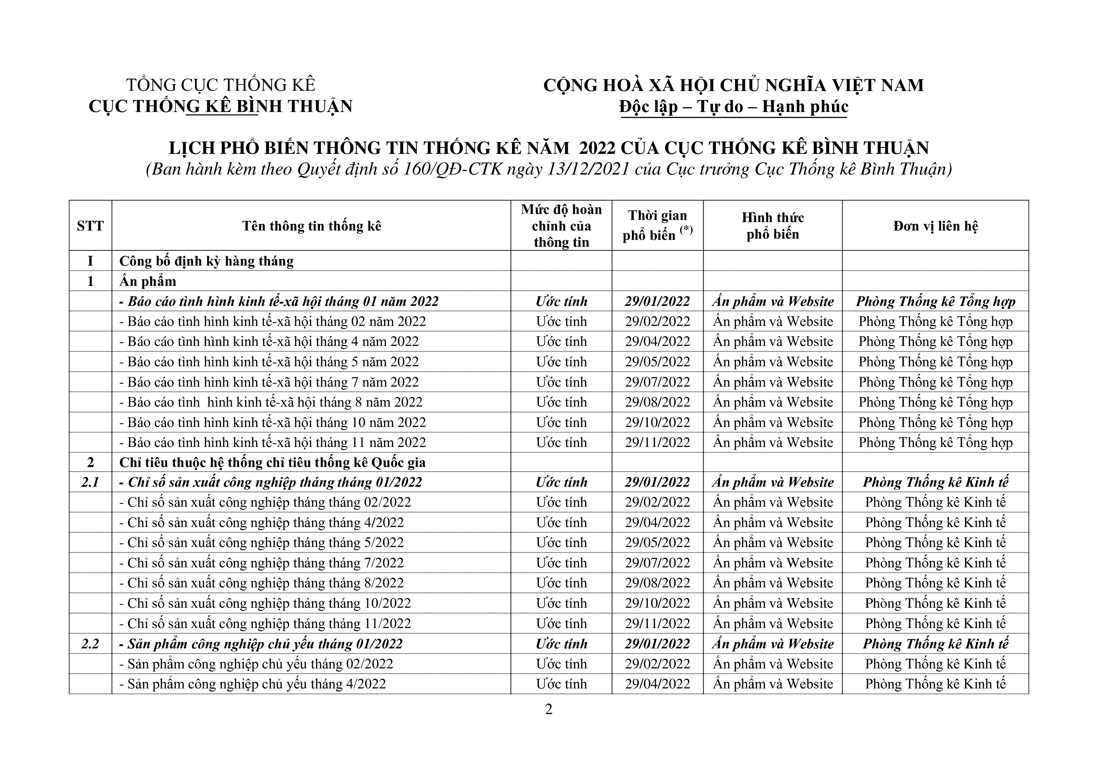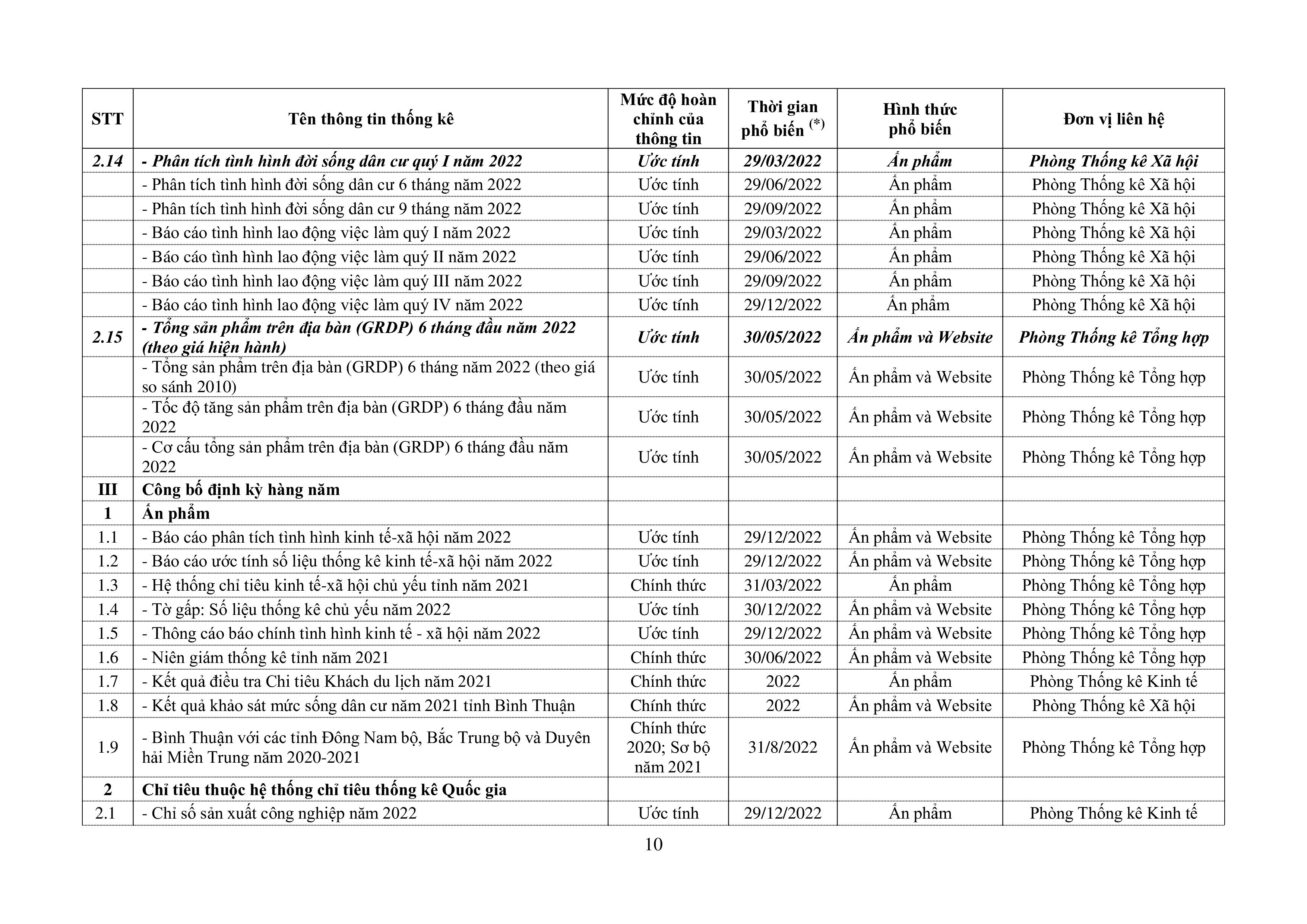 Quyết định ban hành Lịch phổ biến thông tin thống kê năm 2022 của Cục Thống kê tỉnh Bình Thuận.