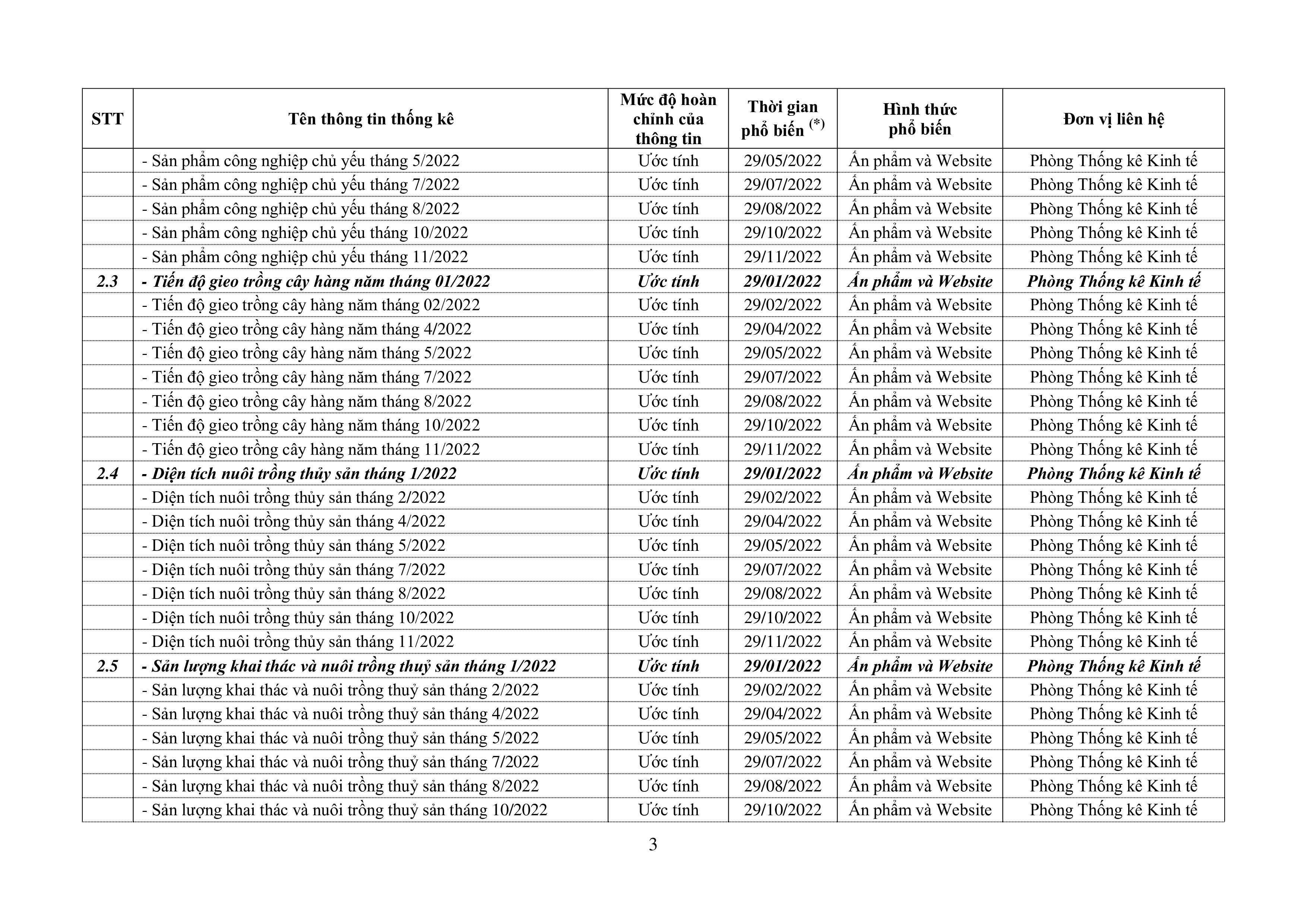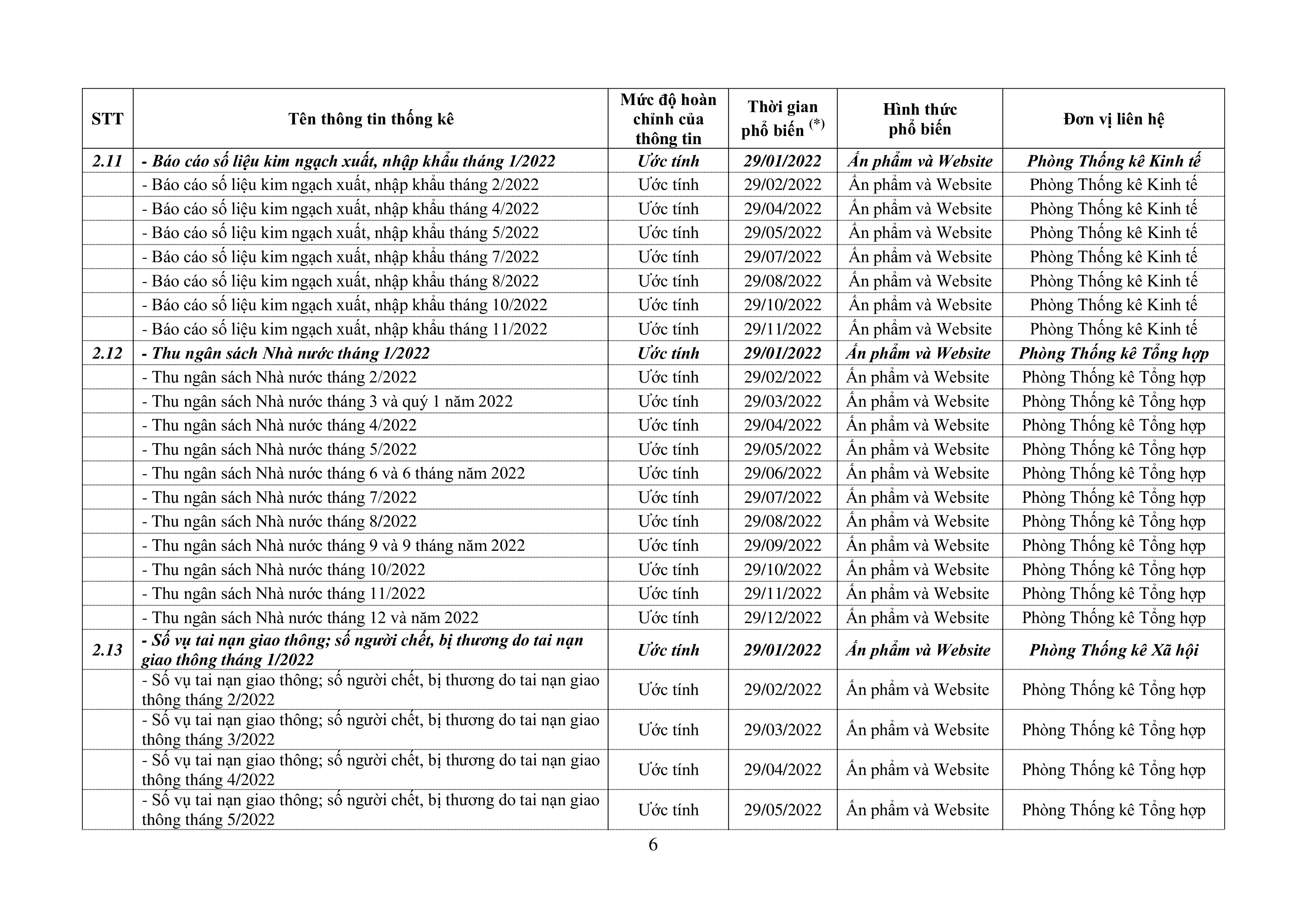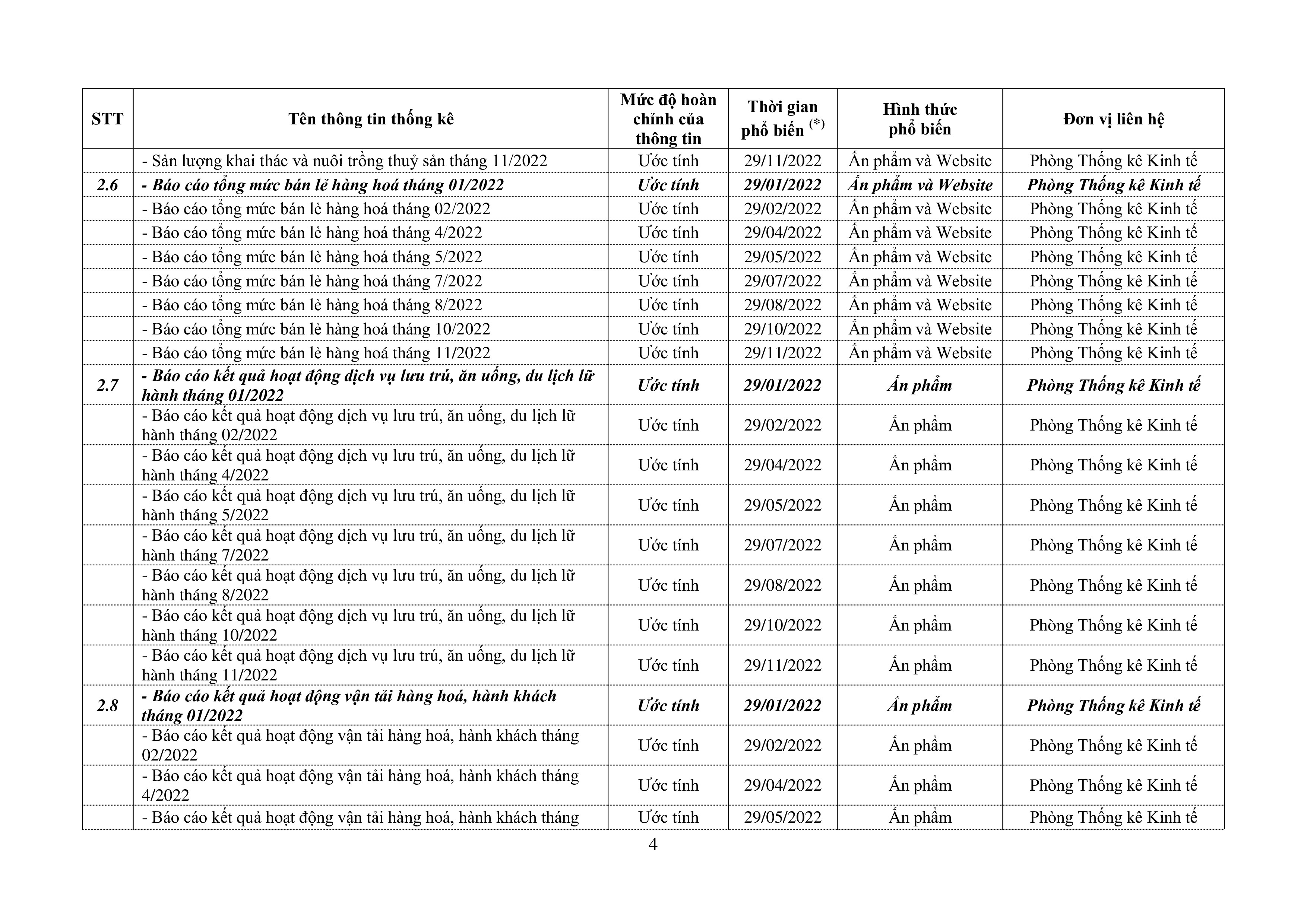 LỊCH PHỔ BIẾN THÔNG TIN THỐNG KÊ