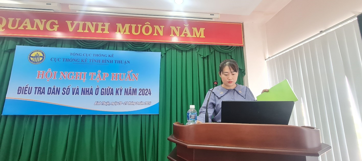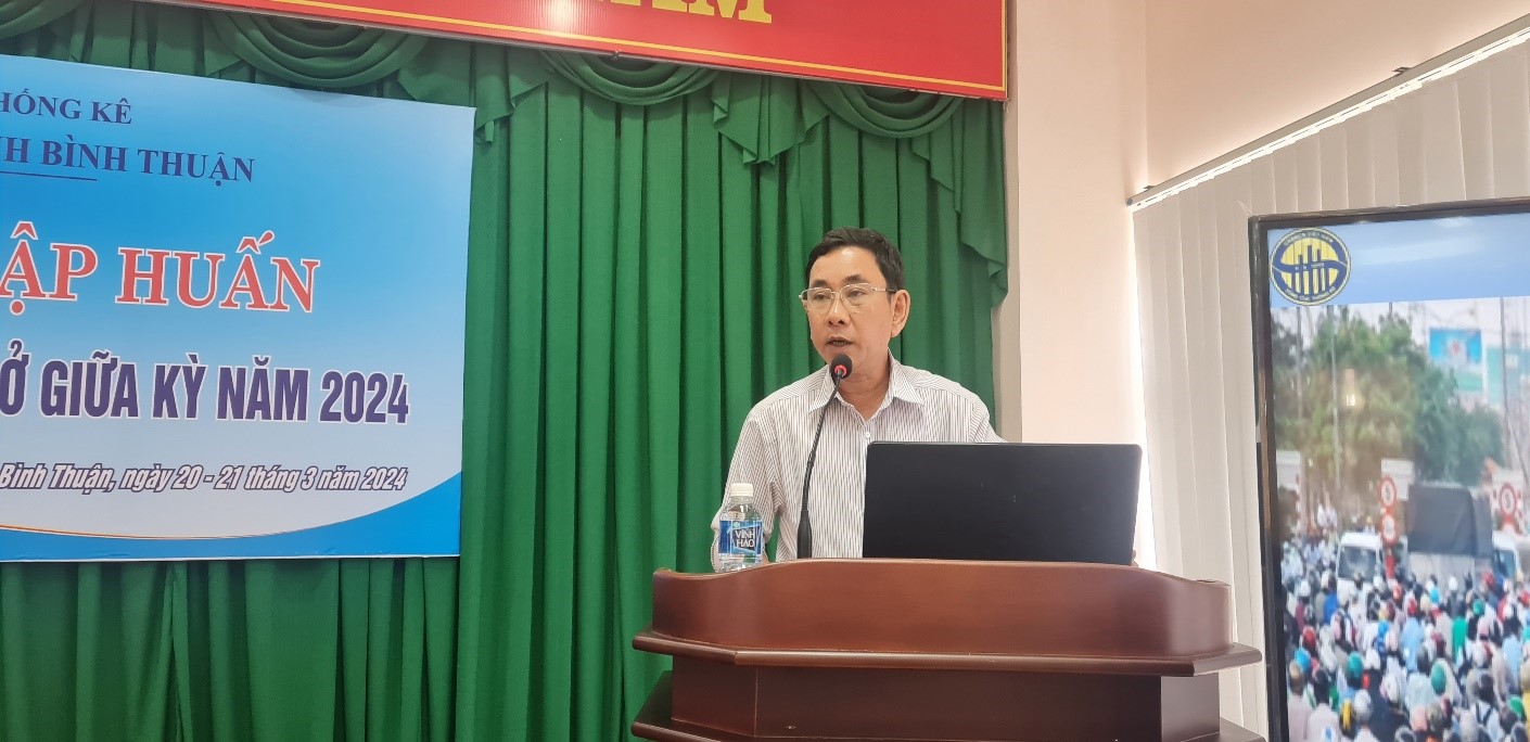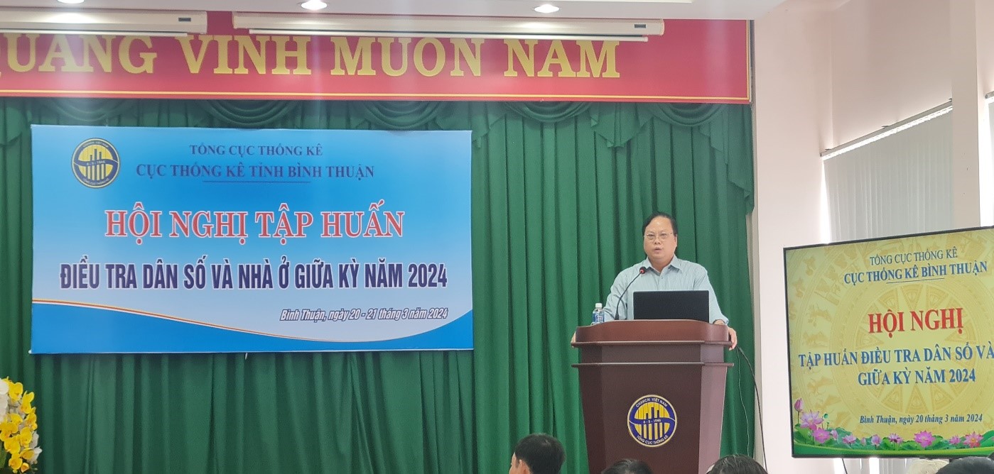 Trong 2 ngày, 20-21/3/2024, Cục Thống kê (CTK) Bình Thuận đã tổ chức Hội nghị tập huấn Điều tra dân số và nhà ở giữa kỳ năm 2024. Ông Phạm Quốc Hùng, Cục trưởng CTK chủ trì Hội nghị.