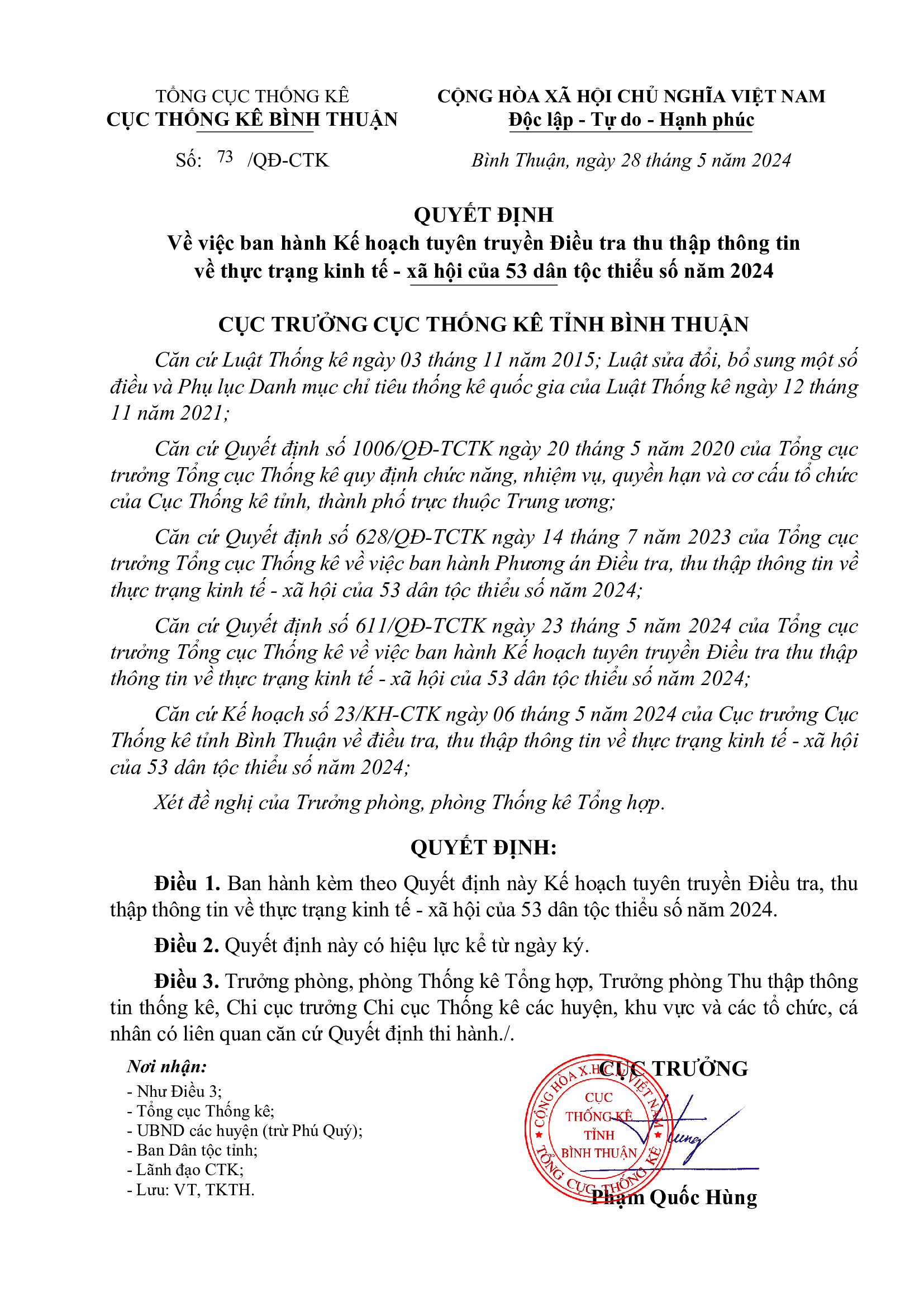 Quyết định số : 73/QĐ-CTK ngày 28/5/2024