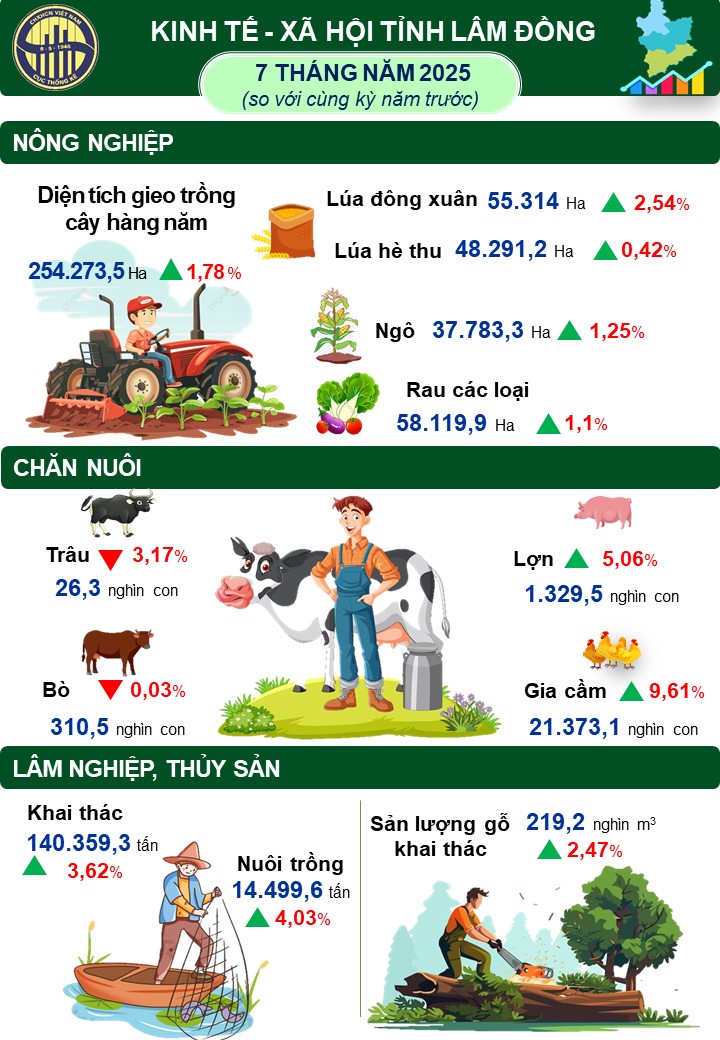 Báo cáo tình hình kinh tế - xã hội tháng 7 và 7 tháng năm 2025 tỉnh Lâm Đồng