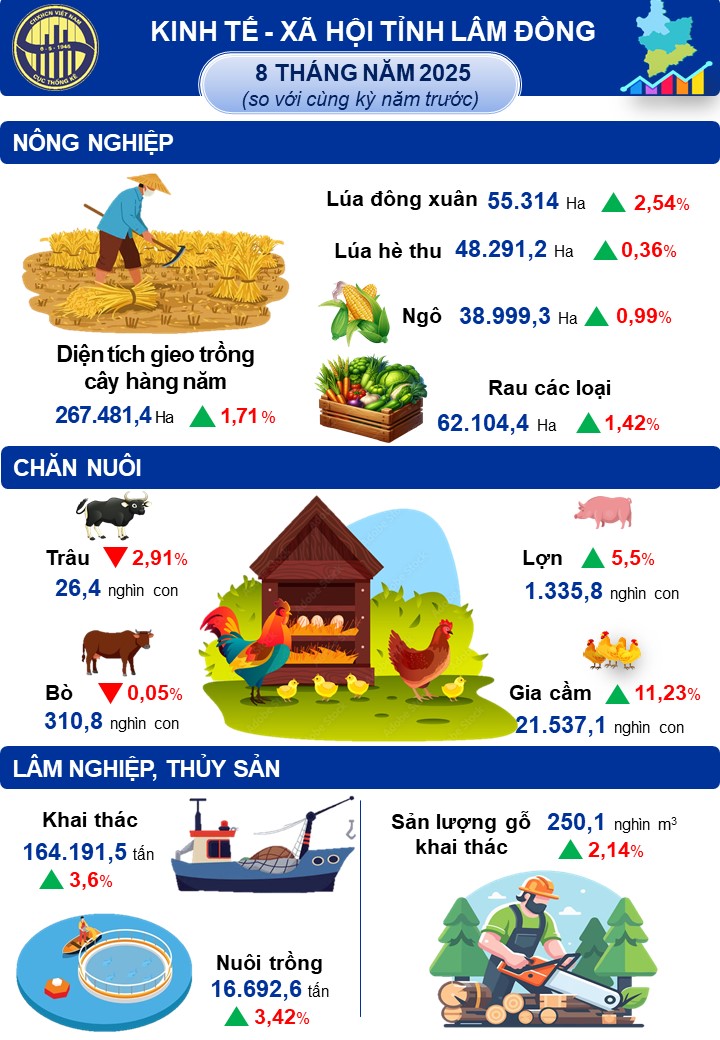 Tình hình kinh tế - xã hội tháng 8 và 8 tháng năm 2025 tỉnh Lâm Đồng