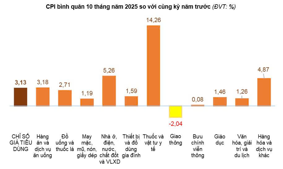 - Các yếu tố làm giảm CPI bình quân 10 tháng năm 2025