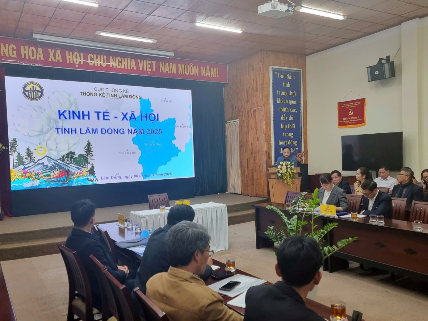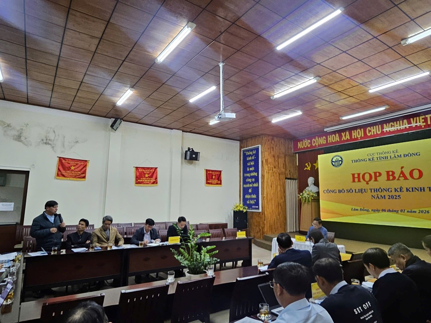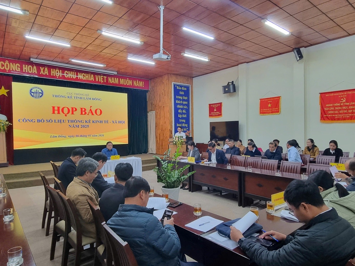 Chiều ngày 06/01/2026, Thống kê tỉnh Lâm Đồng tổ chức họp báo công bố số liệu thống kê kinh tế - xã hội năm 2025. Ông Phạm Quốc Hùng - Trưởng Thống kê tỉnh chủ trì buổi họp báo. Tham dự có các Phó Trưởng Thống kê tỉnh, lãnh đạo các phòng nghiệp vụ, toàn thể công chức phòng Thống kê Tổng hợp thuộc cơ quan Thống kê tỉnh; đại diện Sở Văn hóa, Thể thao và Du lịch, Báo và Phát thanh - Truyền hình Lâm Đồng, Cổng thông tin điện tử UBND tỉnh, cùng đông đảo phóng viên các cơ quan báo chí Trung ương và địa phương thường trú trên địa bàn tỉnh Lâm Đồng.
