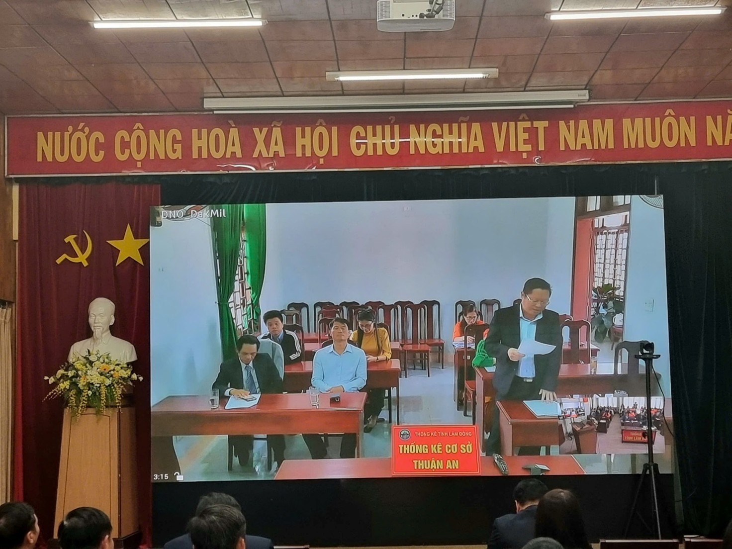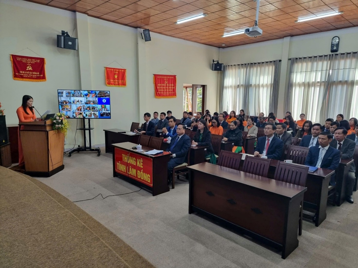 Đồng chí Phạm Quốc Hùng - Bí thư Đảng ủy, Trưởng Thống kê tỉnh chủ trì Hội nghị. Tham dự trực tiếp tại điểm cầu trung tâm có các đồng chí Phó Trưởng Thống kê tỉnh; Lãnh đạo và công chức các Phòng thuộc cơ quan Thống kê tỉnh; Lãnh đạo, công chức Thống kê cơ sở Đà Lạt. Hội nghị được kết nối trực tuyến đến 15 điểm cầu Thống kê cơ sở trực thuộc trên toàn tỉnh.