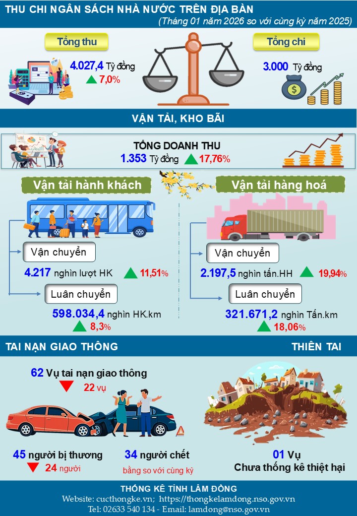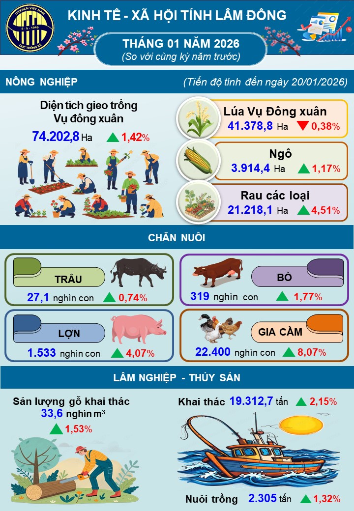 Tình hình kinh tế - xã hội tháng 01 năm 2026 tỉnh Lâm Đồng