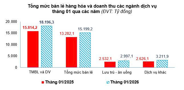 1.1. Tổng mức bán lẻ hàng hóa và doanh thu các ngành dịch vụ