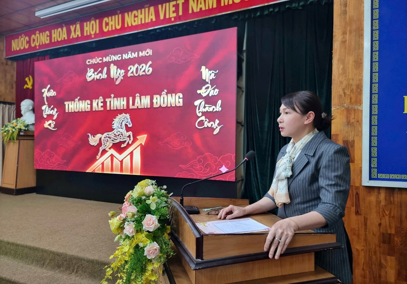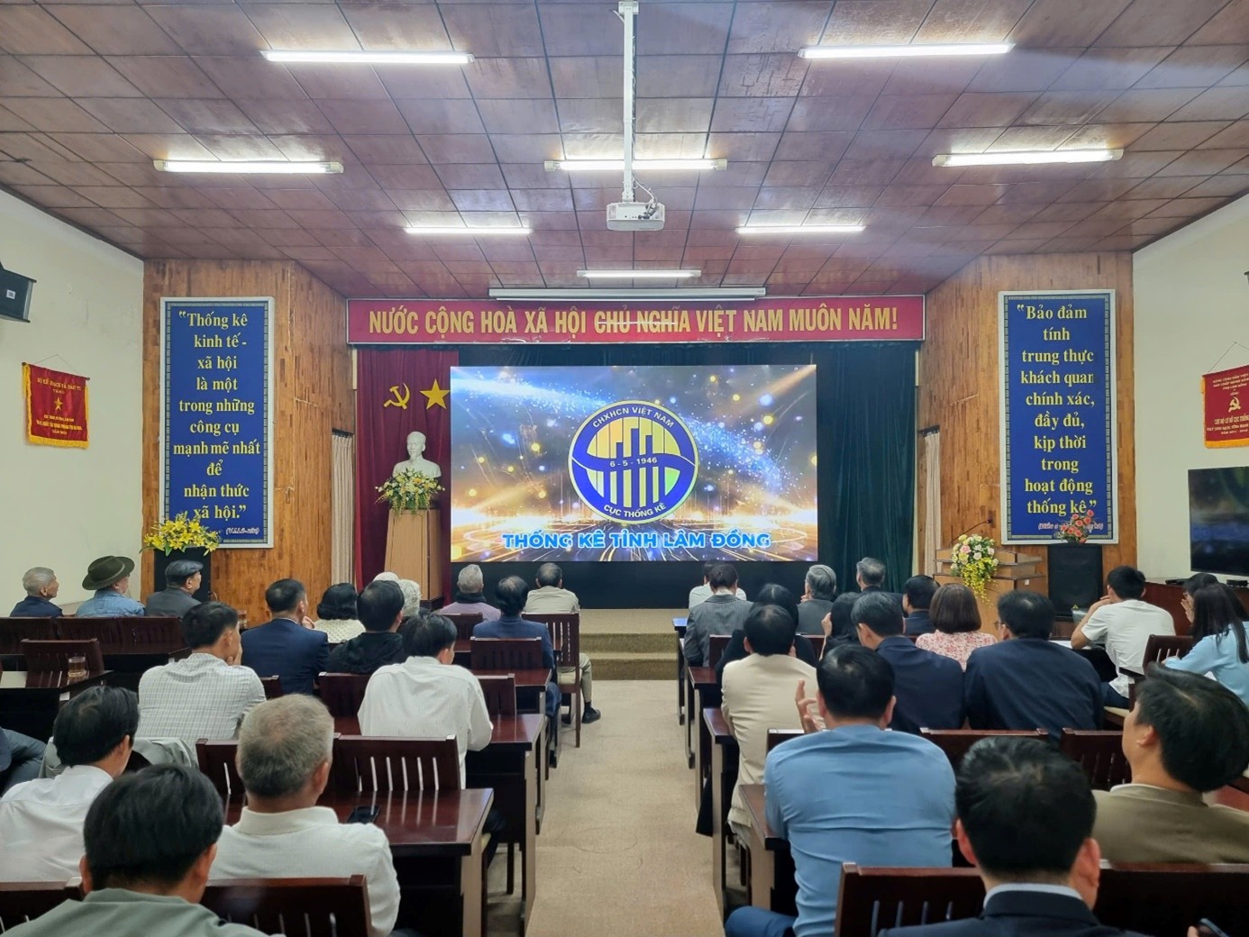 Mở đầu chương trình, các đại biểu đã cùng nhìn lại chặng đường một năm đầy nỗ lực qua video clip đáng giá hoạt động nổi bật năm 2025. Những hình ảnh sống động đã phản ánh rõ nét tinh thần trách nhiệm, bản lĩnh và những thành tựu đáng tự hào mà tập thể Thống kê tỉnh Lâm Đồng đã đạt được trong việc thực hiện các nhiệm vụ chính trị được giao.