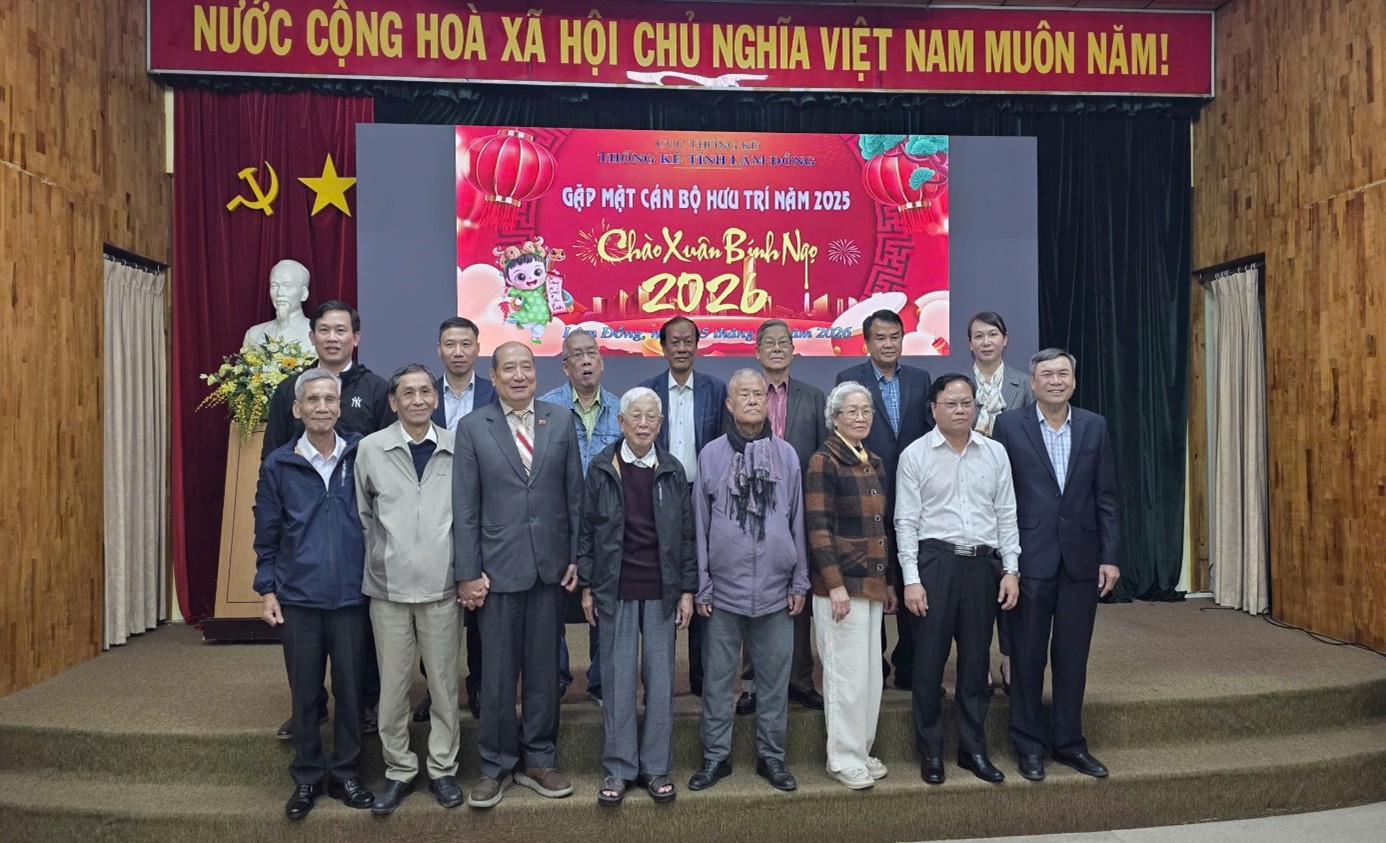 Chiều ngày 05/02/2026, trong không khí hân hoan của những ngày đầu xuân mới, Thống kê tỉnh Lâm Đồng đã long trọng tổ chức Buổi gặp mặt các thế hệ cán bộ, công chức hưu trí. Đây là dịp để các thế hệ người làm công tác thống kê cùng ôn lại truyền thống, chia sẻ niềm vui và thắt chặt tình đoàn kết trước thềm Xuân Bính Ngọ năm 2026.